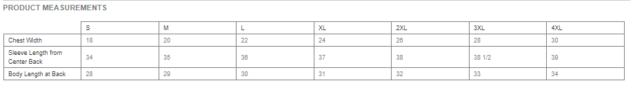 ADULT Size Chart (inches)