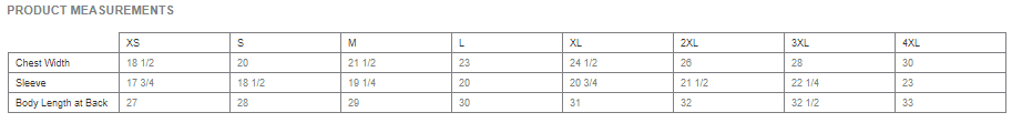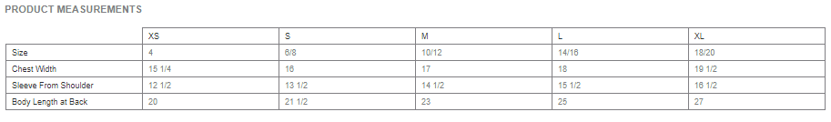 YOUTH Size Chart (inches)