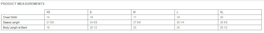 YOUTH SIZE CHART: